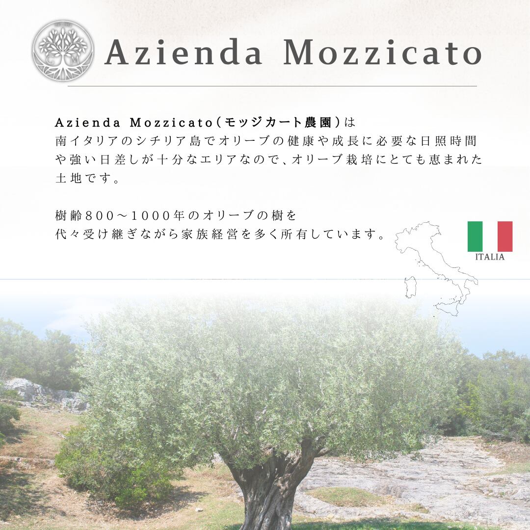 柑橘系の香りが口の中に広がります。オリーブオイルからくる苦みなどはごくごくわずか。